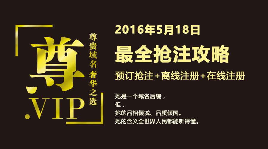 她已经于2016年5月18日0点整,面向全球开放注册!在华夏数据注册.vip域名,享受半价优惠!